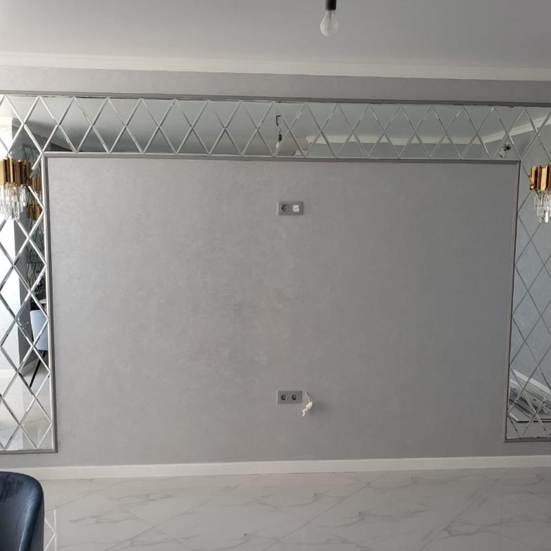 Использована серебристая зеркальная плитка "вытянутый ромб".